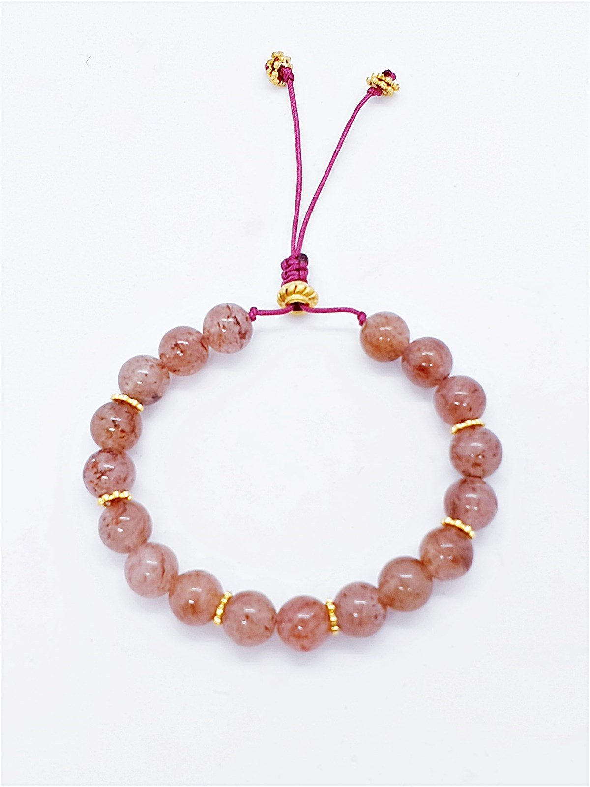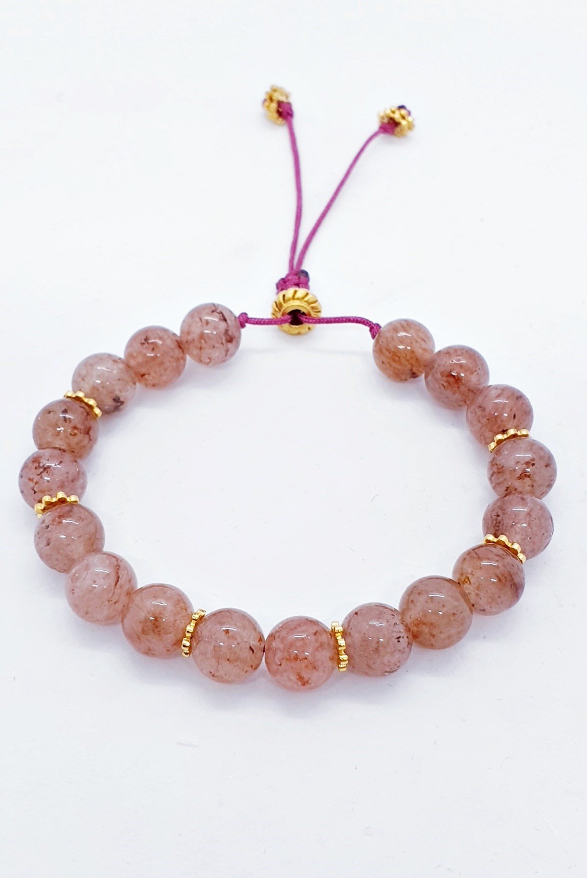 ÇİLEK KUVARS AYARLINABİLİR İPLİ BİLEKLİK