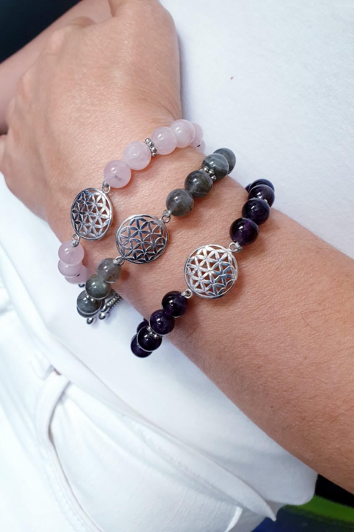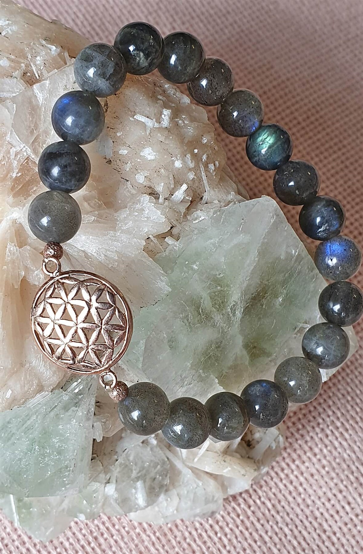 Yaşam Çiçeği sembollü Labradorit bileklik (MSB-02)
