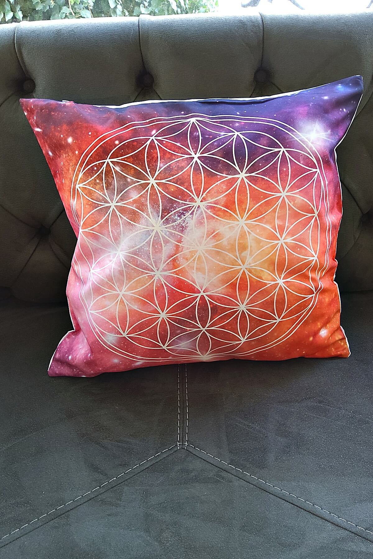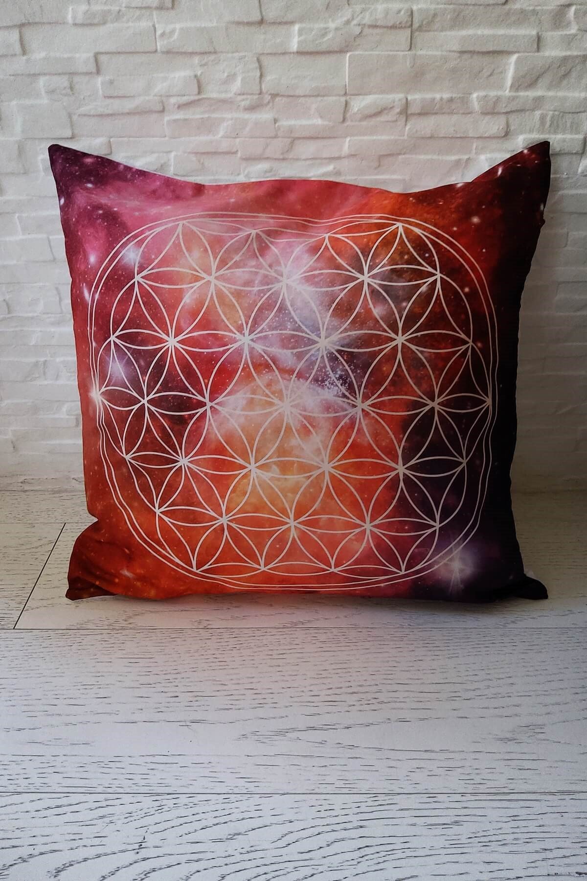 YAŞAM ÇİÇEĞİ SEMBOLLÜ PORTAKAL RENGİ YASTIK