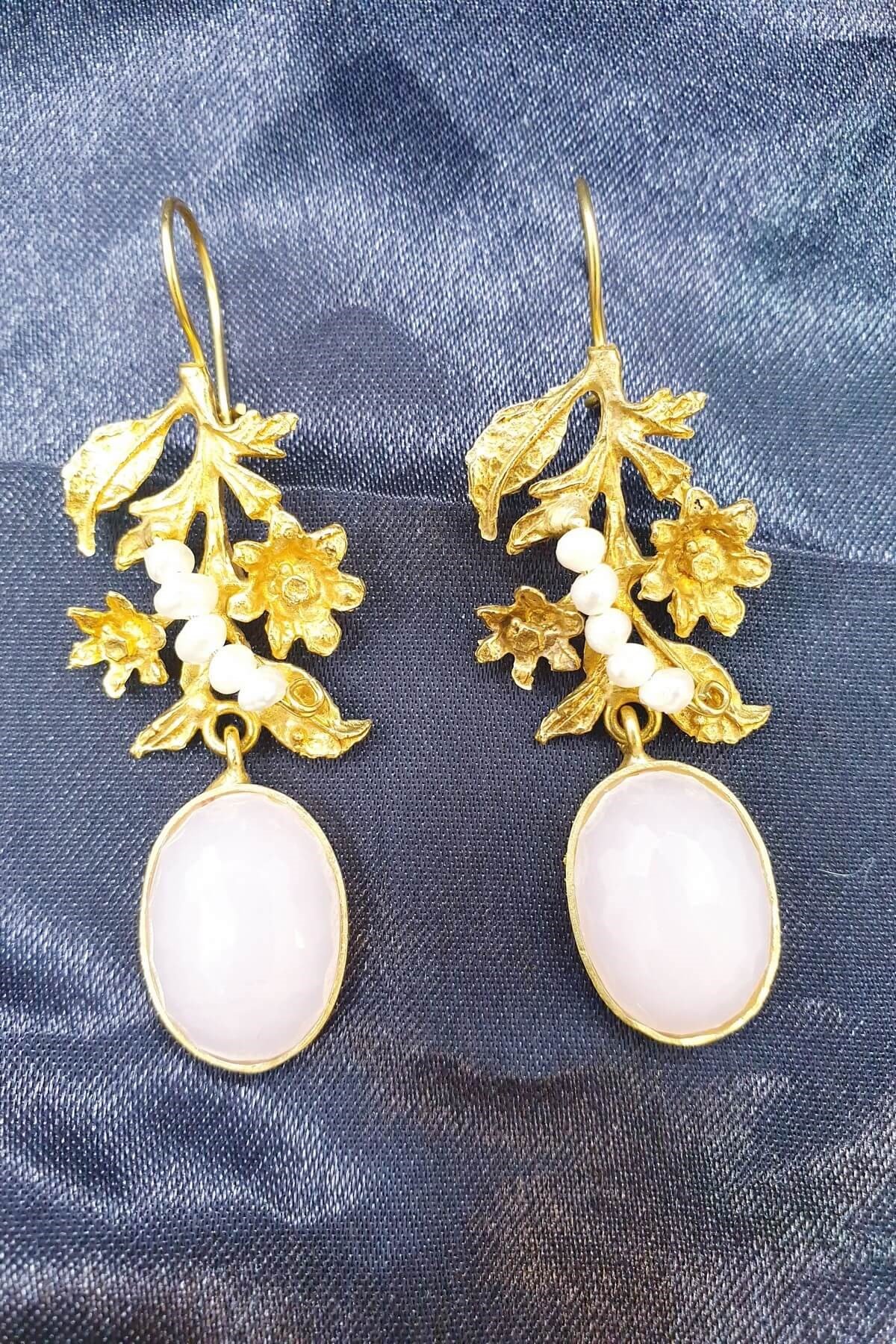 Pembe Kuvars İnci Salkım Küpe (OKUP-39)